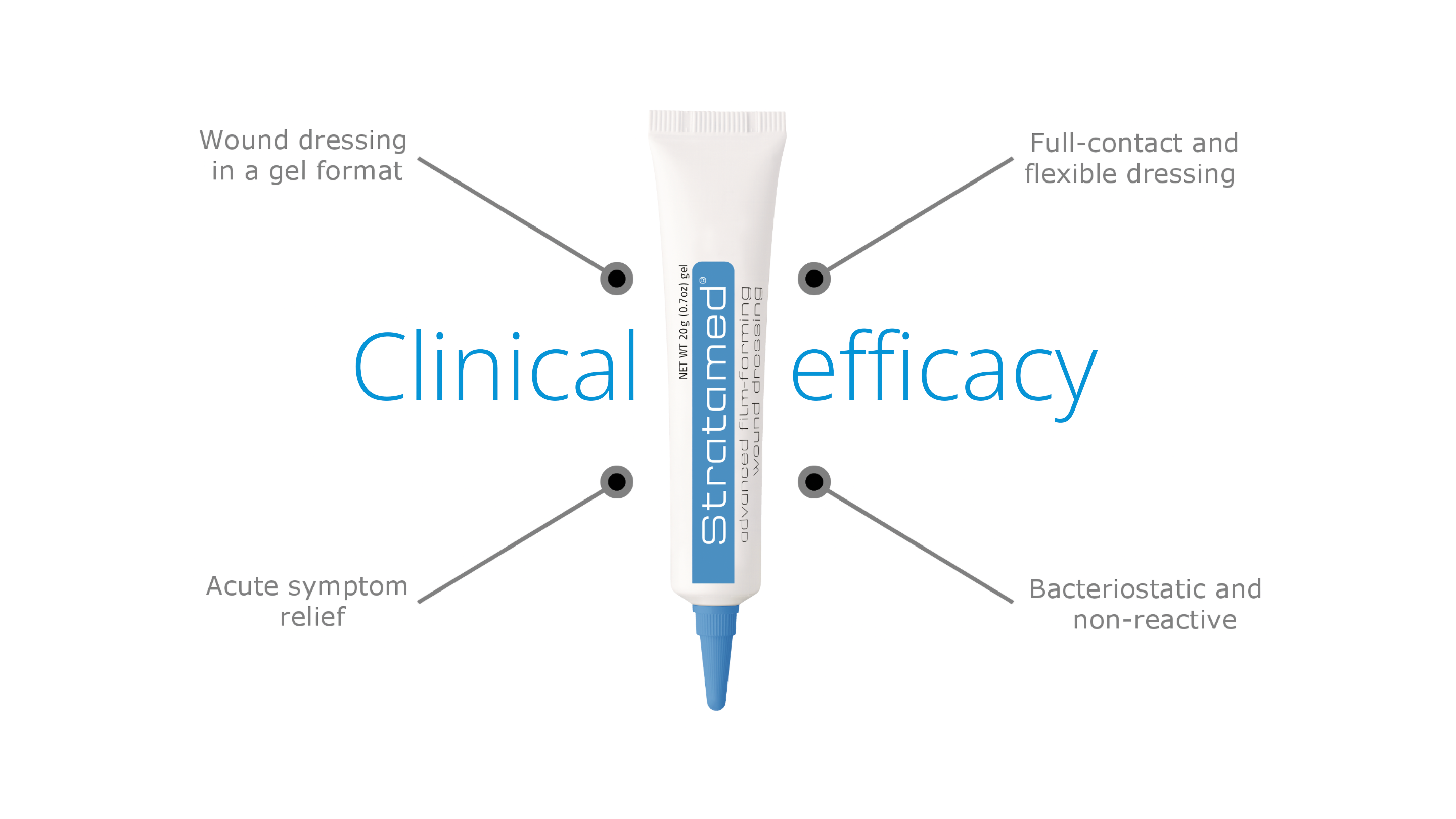 Stratamed has been developed with a special consistency to ensure that it remains in stronger contact with the wound bed or damaged surface.